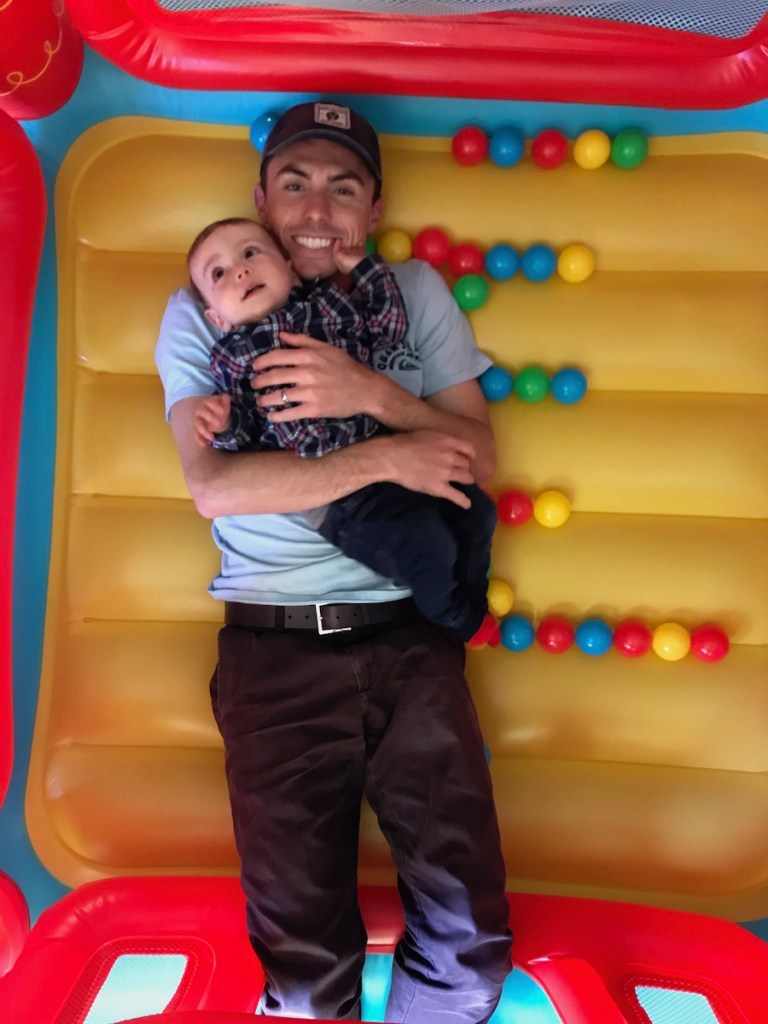 Here’s the honest truth, our house currently is chaos. And this is entirely intentional. Part of it is laziness, but part of it is strategic. There are TONS of invitations to play all over our house for Hudson. He can jump in his bounce house, he can color on his chalk board, he can pretend play with his trains, he can practice his baseball swing on his tee. I am simply leaving things out all over to invite him to play. This creates a very messy house, but it is not like we are having guests over anytime soon and it takes the pressure off of me to constantly entertain.