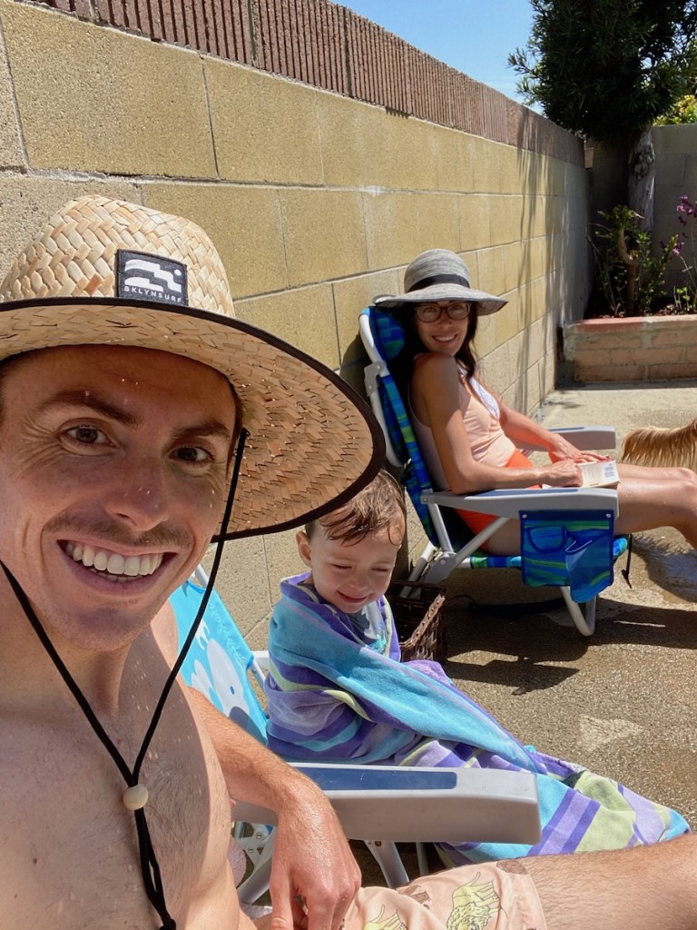 Water makes everything better. We are really thankful to have a pool. It has been a blessing in this time stuck at home. This has been a source of abundant entertainment and energy release for our active, water-obsessed boy. It also has been a joy to lounge out by the water and watch H splash around with his daddy and Nala, who is also water-obsessed.