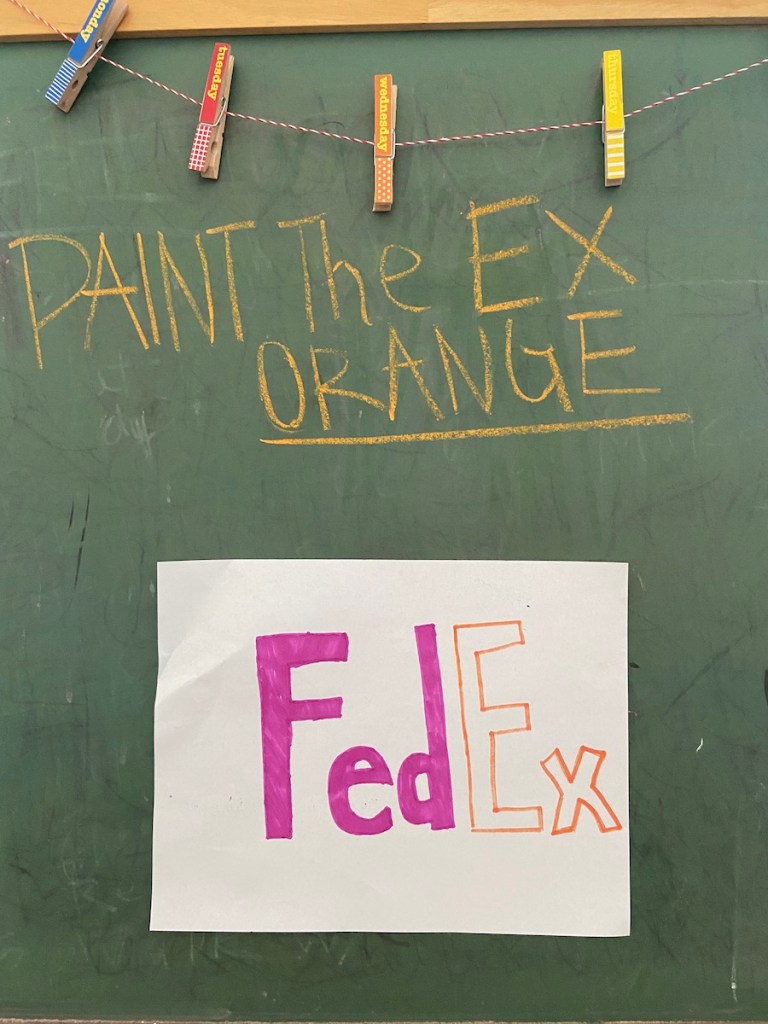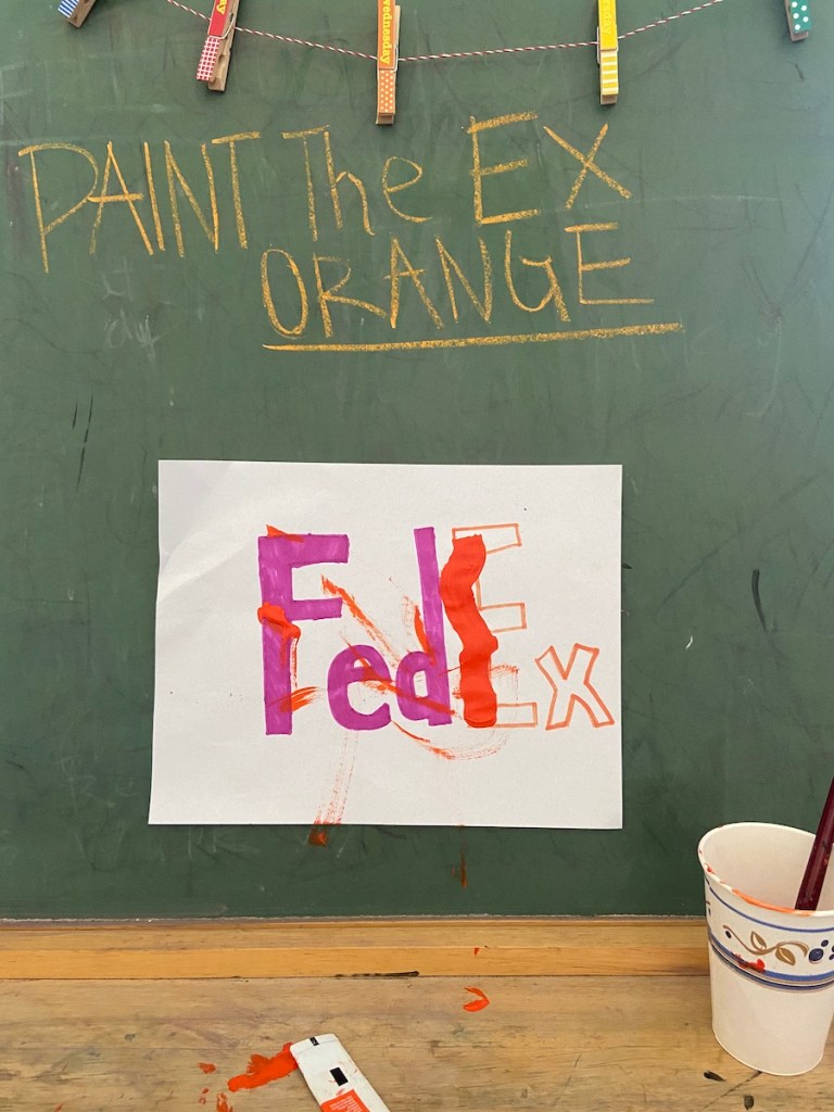 I came up with this idea as I noticed on our Monday run how bright and orange the Ex is on the FedEx truck. Hudson is very much into all types of trucks so this was another way for me to tie in his interests. I did not have much expectations for this craft, but it turned out to be a fun one. Hudson definitely needed help to actually paint the white space on the Ex, but he did enjoy wildly waving his orange brush all over.