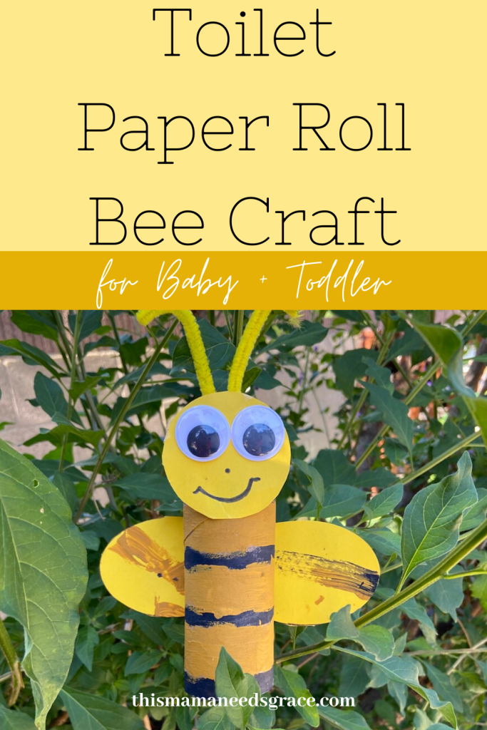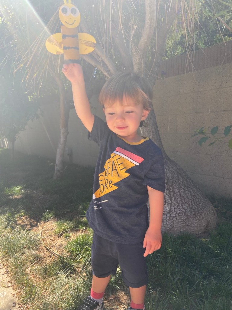 Even though H was not super into this craft, he loved the final product! This craft created even more play and imagination as I ran around the house chasing him with the bee. The toilet paper roll makes it the perfect finger puppet too!