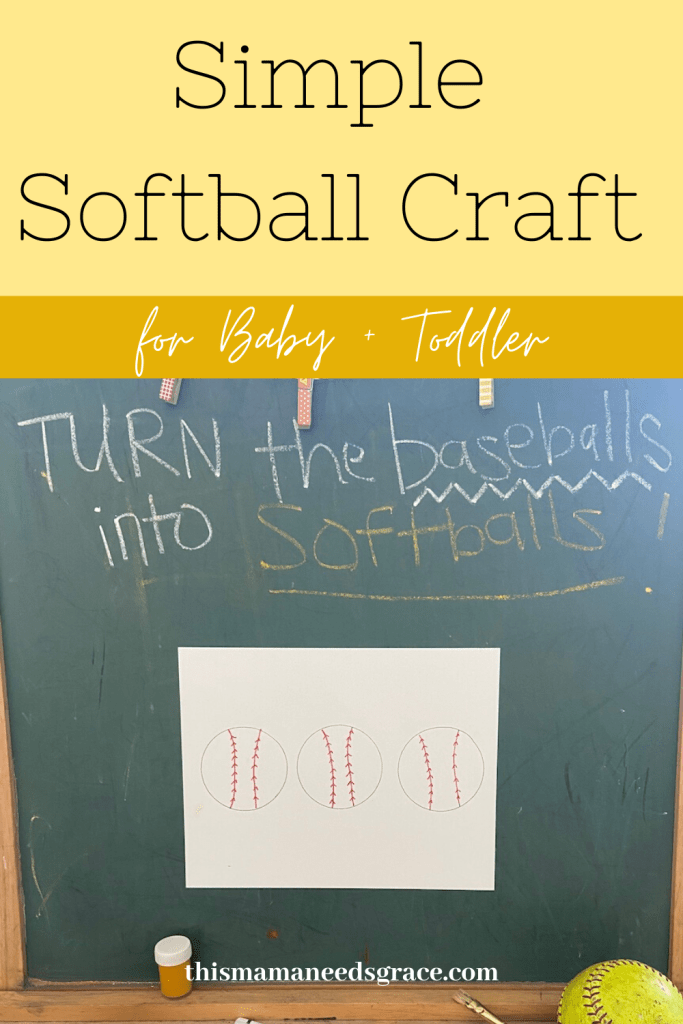 Our Friday was super full, so I did a super simple paint set up on the easle board. I simply drew three baseballs on white card stock. I then gave H a paint brush and some yellow paint and told him to paint the baseballs yellow. I also had a white baseball and yellow softball displayed for him to show him the difference!