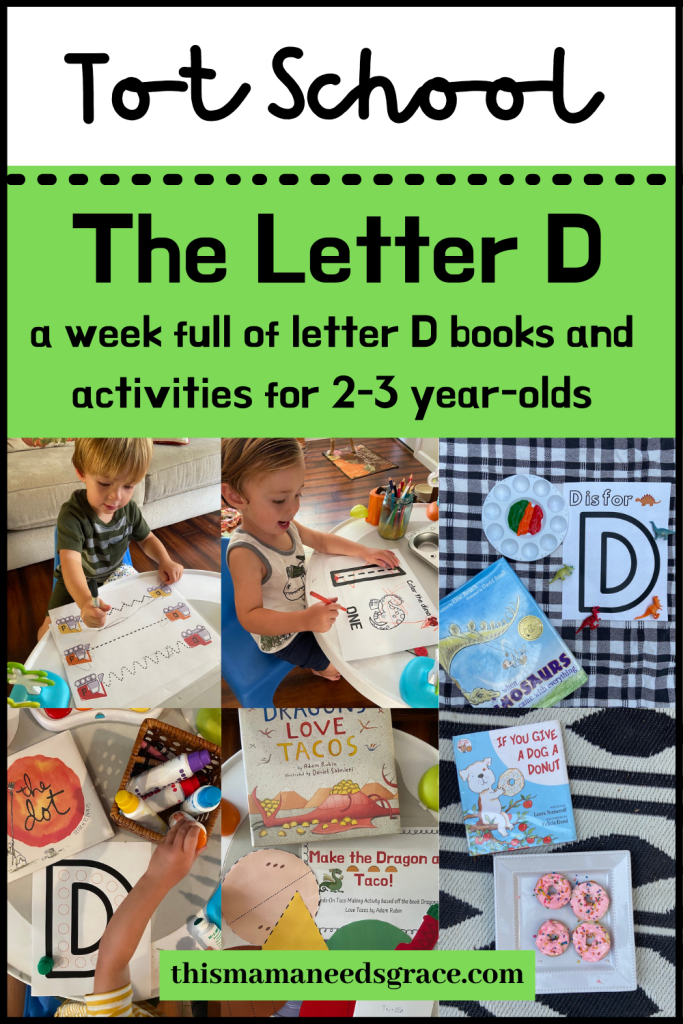 This week we learned about the letter D! We did a bunch of fun activities full of dragons, donuts, and dump trucks. You can purchase this full week of Letter D Curriculum on my TpT shop for just $5. If you want to buy the whole ABC bundle + save money, you can buy the growing bundle here!