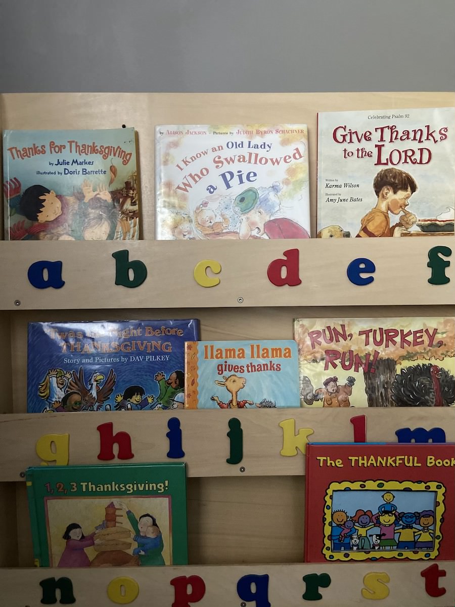 Alongside these books, if you are looking for some intentional Thanksgiving learning activities to do with your little one, I have a Thanksgiving Curriculum, specifically designed for 2-3 year-olds that you can purchase for just $5! It is a really fun week of learning! Some of my favorite activities include the Feed the Turkey Game (works on alphabet recognition) + the Thanksgiving Plate Activity (works on naming pictures).