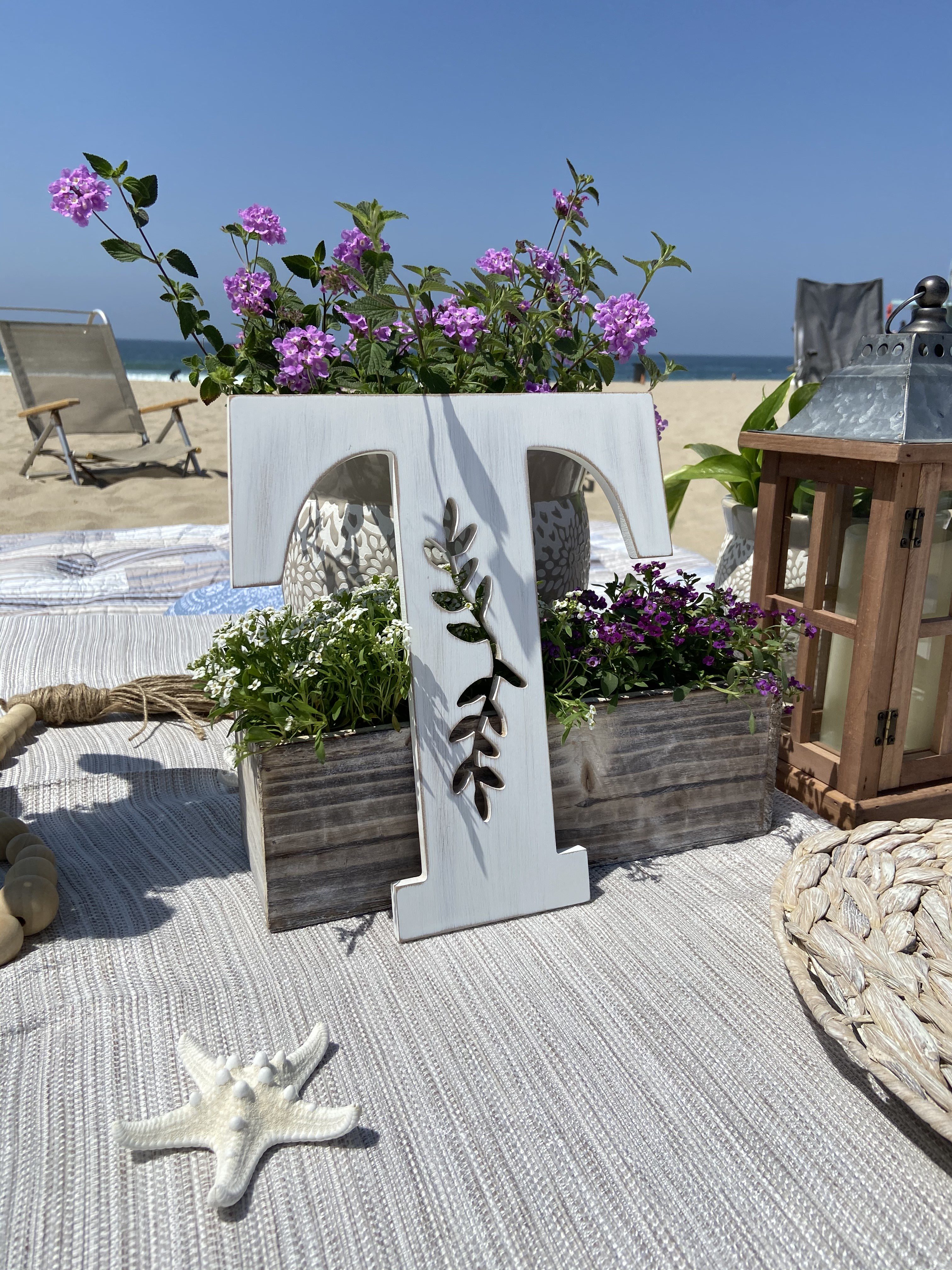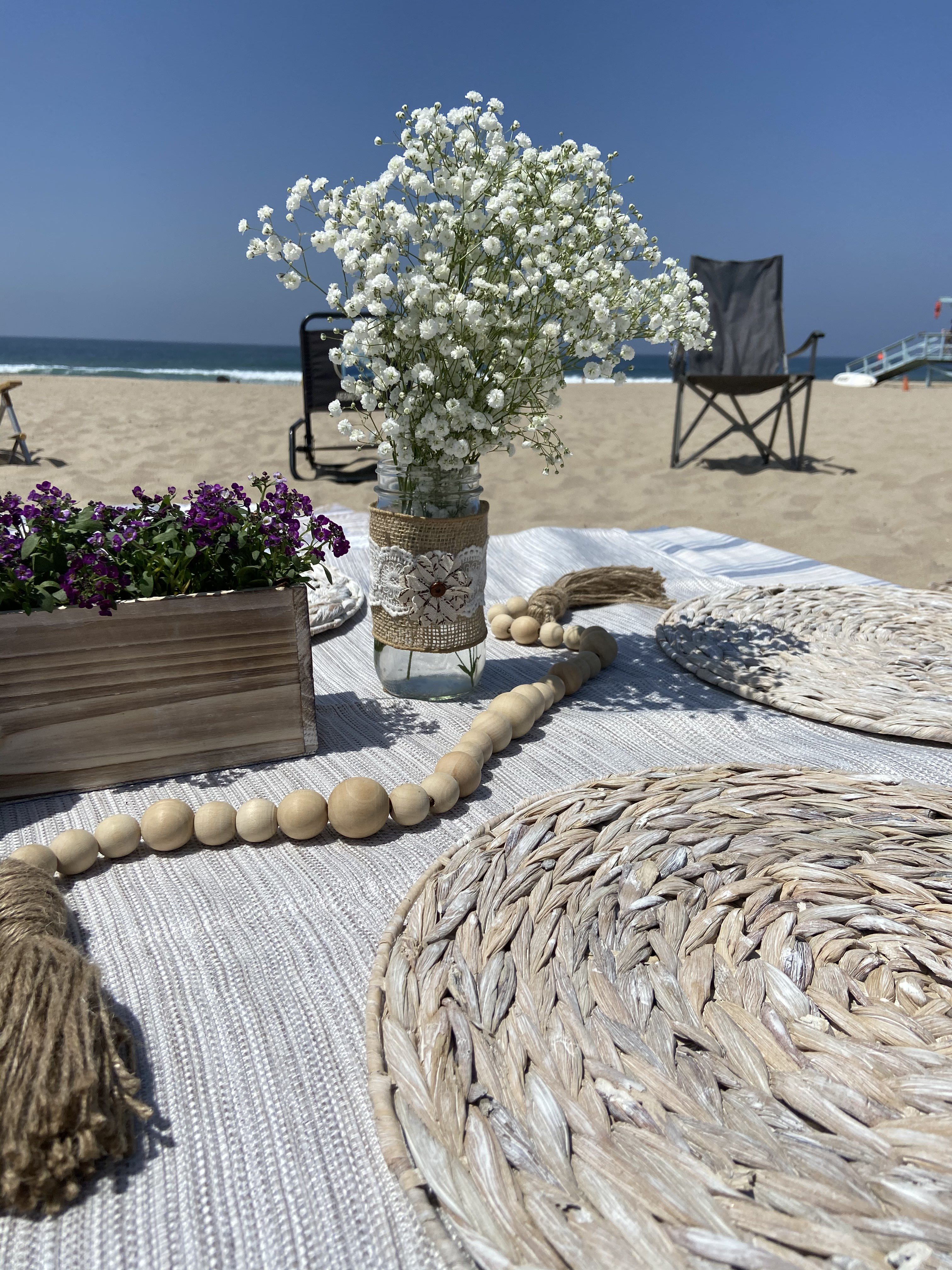 There are lots of amazing picnic businesses that will setup a picnic for you, but we decided to do it ourselves! My mother-in-law and mom did a great job creating a beautiful beach-themed picnic setup. I wanted to share some of the details over on here so I can remember it and also, hopefully it can give you some inspiration if you are planning a similar type of event!