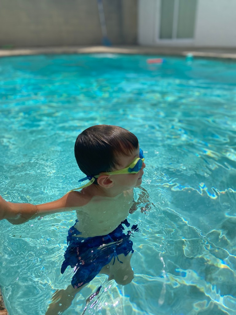 At the start of June when baby Thatcher was just a few weeks old, I made a summer schedule for us and stuck it up on our refrigerator. It was pretty simple and included things like morning Bible time and chores and “swim class.” This schedule really held our summer together and gave us a really nice rhythm as I adjusted to having two little boys at home. It was also the consistency of getting in the pool everyday that got Hudson to officially learn how to swim! He started the summer always wearing floaties in our pool and now he jumps in with confidence as he swims to the other side. H learning to swim was definitely a highlight of our summer! The phrase “it is time for swim class” became something we expected and enjoyed to hear from him every afternoon as he ran to his room to get his swim trunks.
