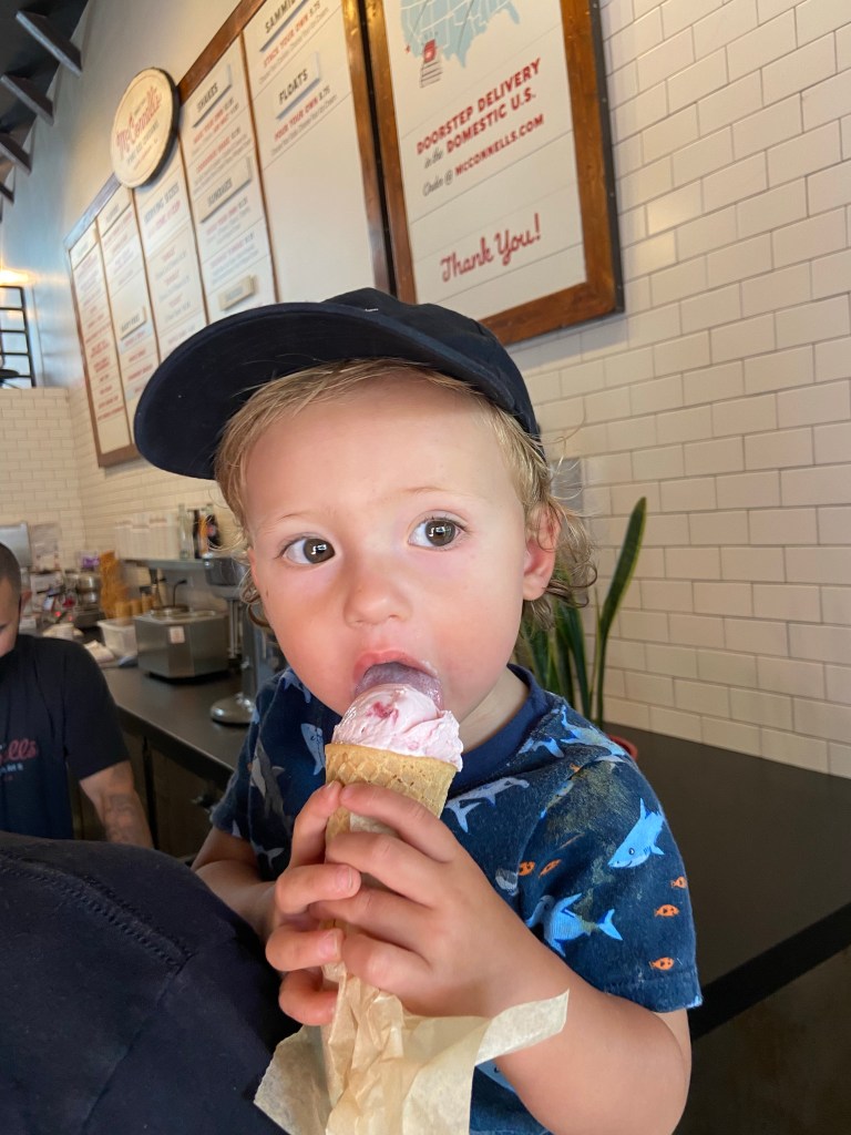 We then drove into downtown Santa Barbara and took a quick coffee (Handelbar) and ice cream (McConnell’s) stop. It was such a quiet day out and felt so peaceful watching the boys happily gobble up their mini ice cream cones on a bench. It was Thatcher’s first ice cream cone and he was very excited.