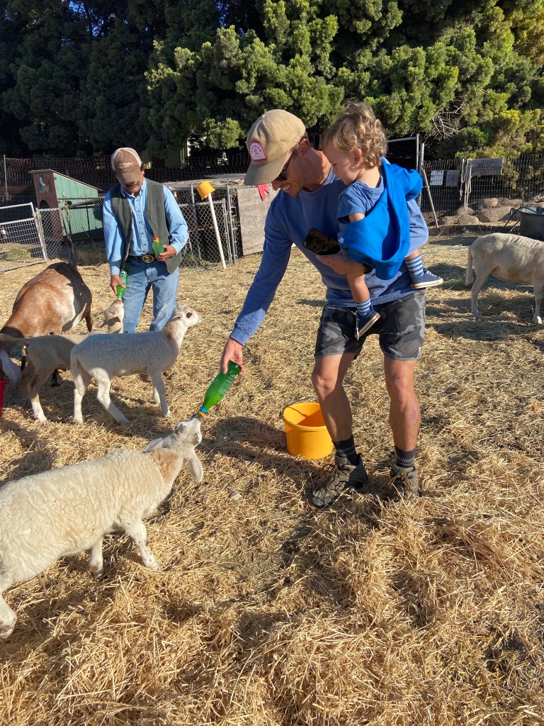 The sunshine woke us all up early, but it was a good thing! It gave us enough time to hike up to the llama farm and make the 8 am feeding. This was definitely a highlight for us. It was just us and the farmers. We got to feed the one-month old lambs milk from large green, glass bottles. It was the sweetest. Thatcher bonded with these baby lambs and Hudson was fond of the donkey and the pregnant goat, Honey.