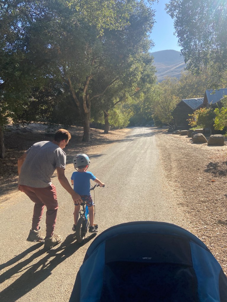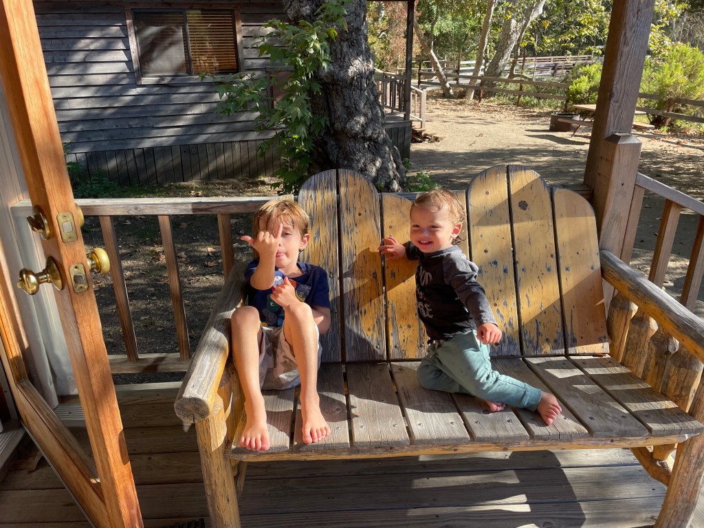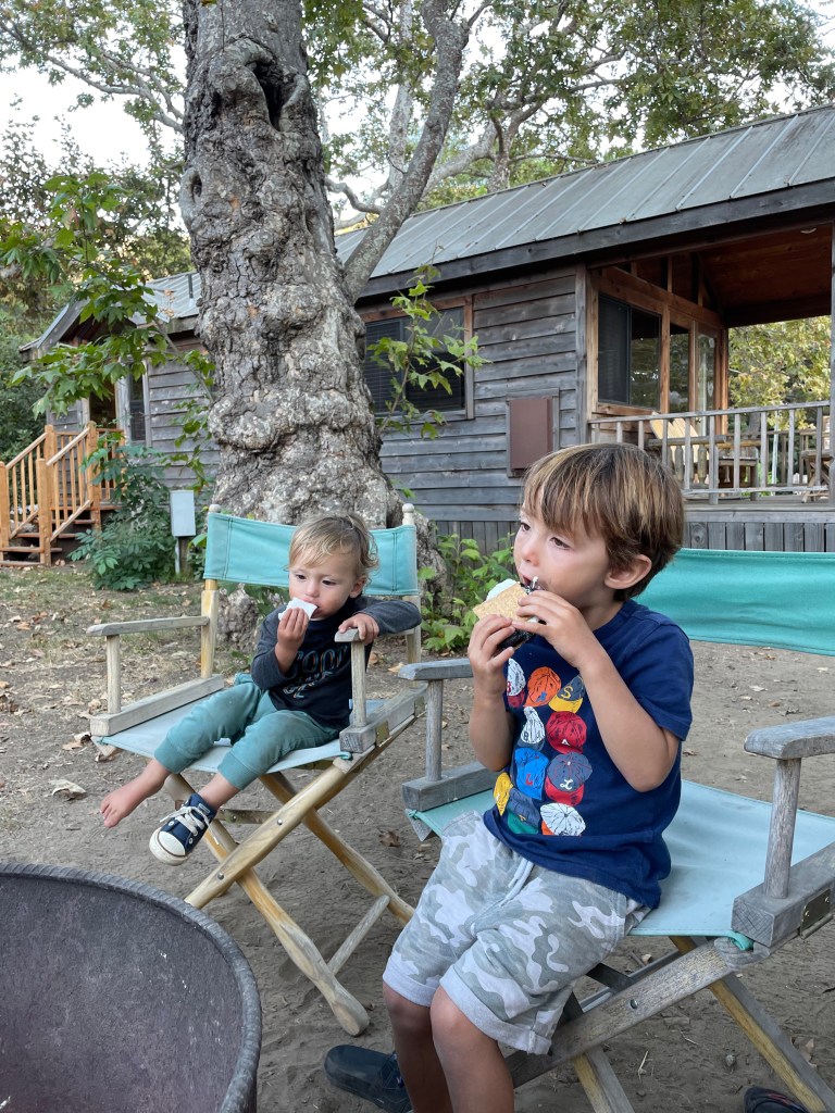 By the end of the day, we made it to our cabin at El Capitan Canyon. We really enjoyed it here. It was perfect with our two small boys. It really gave us a fun, outdoor camping experience while still having the luxuries of a bathroom, shower, mini kitchen, pool and playground. Our cabin was right across from the pool/playground area, which was perfect. On our first night, we went to the pool and went on a short walk to the market. It was a bit longer than we expected and was about a full mile walk round trip, but it was beautiful out and a nice way to see more of the resort. We made it back to our cabin and Lance started a fire and grilled sausage for our first dinner. I will admit it was a bit wild with the fire pit + two crazy boys, but it worked out and all were fed and happy. S’mores were of course had on both nights!