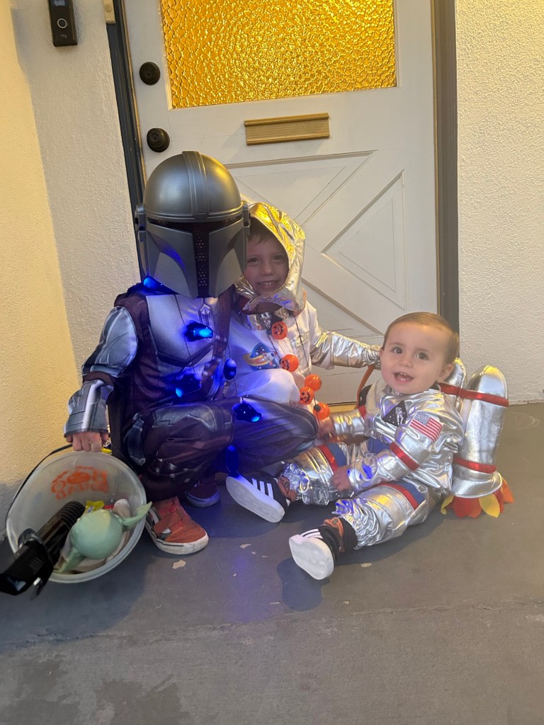 - Halloween was the day before we left for NYC. We had fun trick or treating in our neighborhood with another family with two young boys. T was committed to being an astronaut, so we had Declan also be an astronaut (obsessed with this baby astronaut costume from Pottery Barn). H had no interest in being an astronaut so he was the Mandalorian from Star Wars. Iāve decided to let go of trying to always do a family costume and let the boys choose what they want to be.