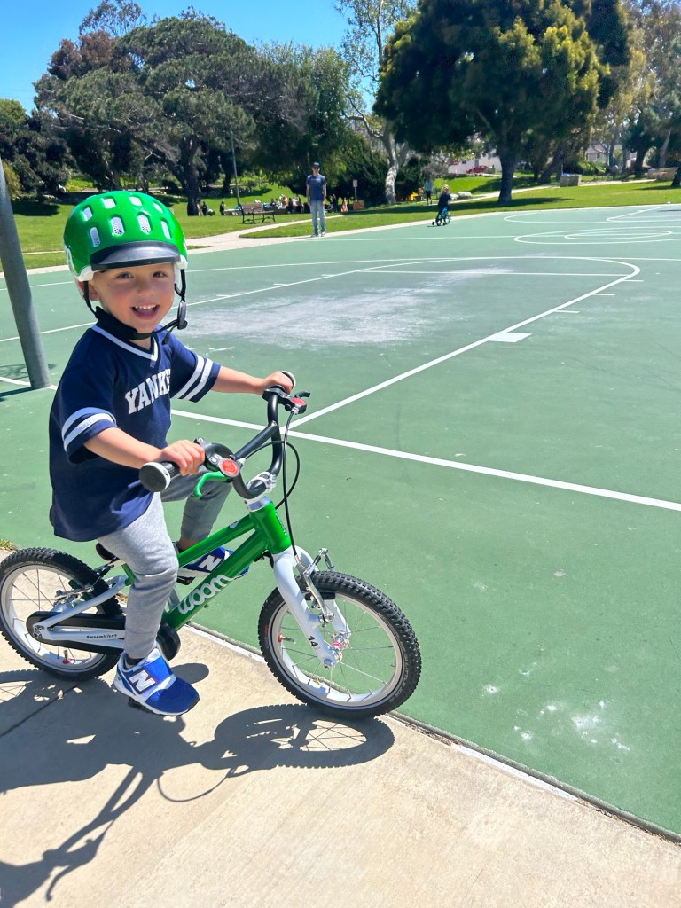 - Thatcher learned how to ride a 2-wheel bike before turning 3! This was our goal since Hudson hit this milestone at same age. Woom sent us a size 2 bike and it was the perfect lightweight bike for him to learn on. This was such a huge confident booster for him.
