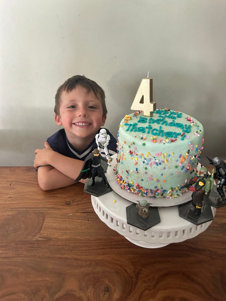 Thatcher is obsessed with Star Wars right now, so he had a special birthday full of all things Star Wars. It was right at the end of baseball season, so on his actual birthday, we had two baseball games, but in the middle of the day, we celebrated with family coming over. We had pizza and a cake with little Star Wars figurines on it. We went to Disneyland a few days after his birthday and hit all the Star Wars rides! Age 4 is such a sweet age and it was fun to celebrate our mellow, happy guy.